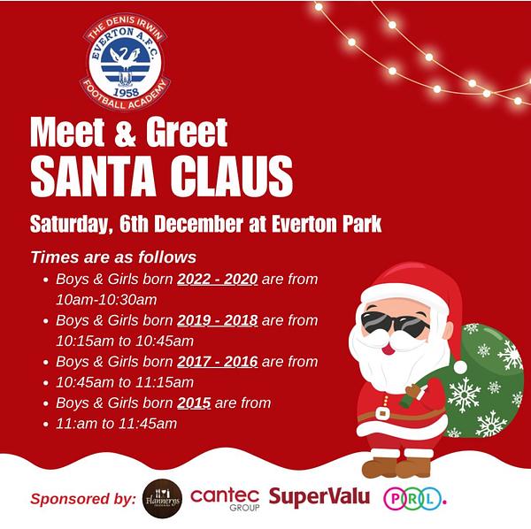 Join us in Everton Park this Saturday morning for what is one of the highlights of the year! Santa Claus visits us to see the boys & girls from our Kickstarters Programme and our Academies, looking forward to seeing you all there 🎅💙🎁